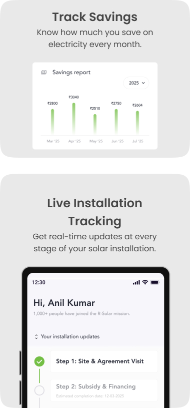 “My bills dropped from ₹4,300 to ₹600/month! R-Solar handled everything – subsidy, EMI, installation & cleaning.”